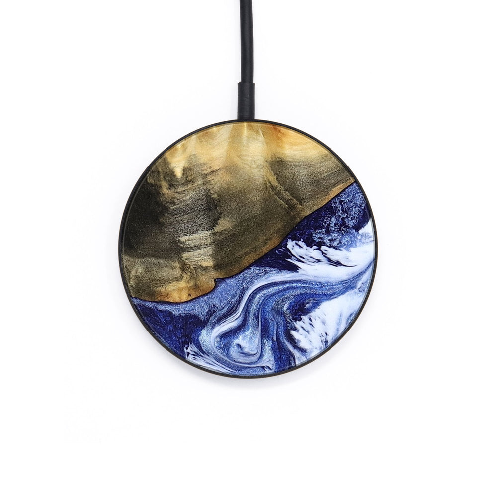 Perfectly simple, MagSafe compatible, USB-C, 1 of a kind Wireless Qi charger. CNC machined aluminum body. Every Wood+Resin inlay is unique and made at our shop in Elkhart, Indiana.