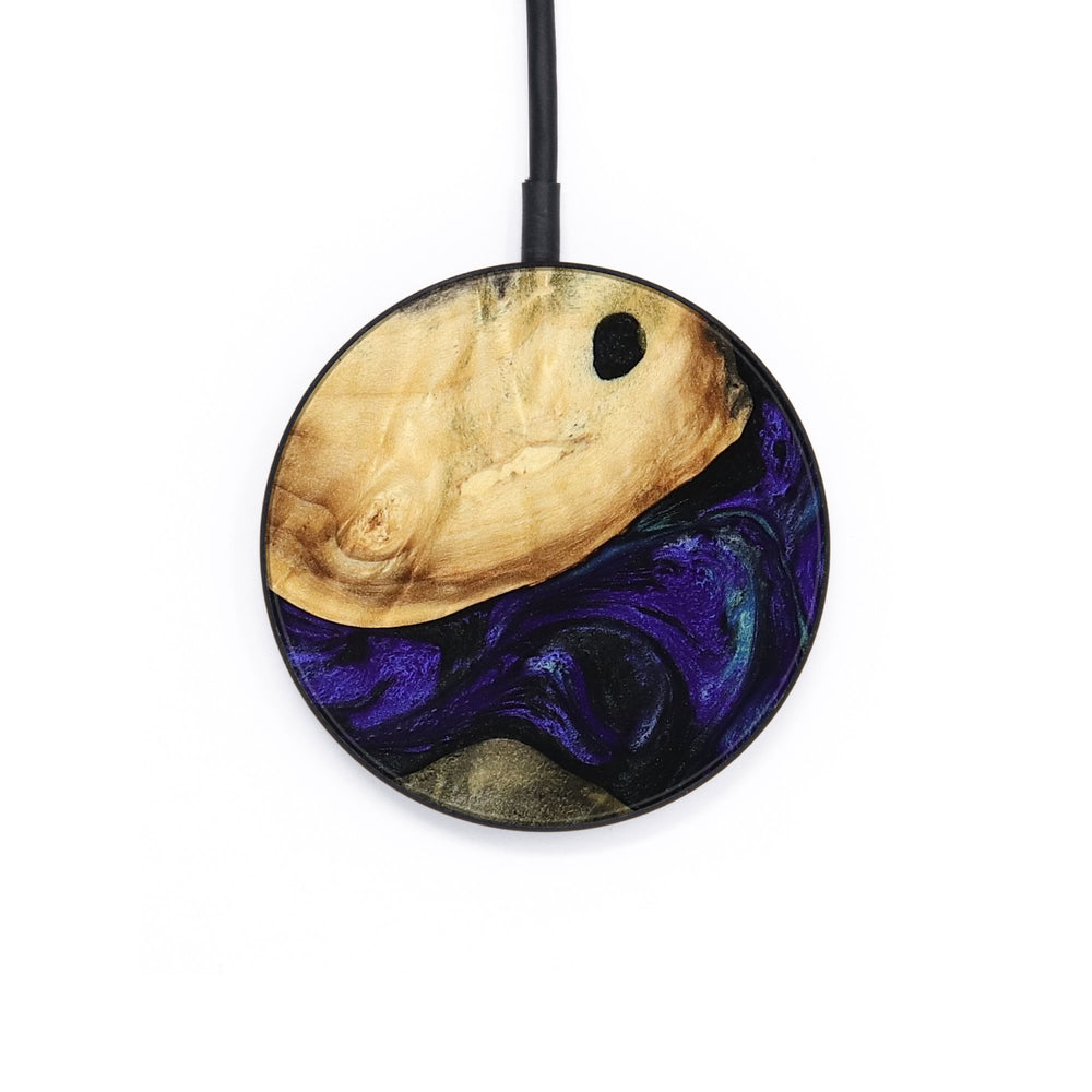 Perfectly simple, MagSafe compatible, USB-C, 1 of a kind Wireless Qi charger. CNC machined aluminum body. Every Wood+Resin inlay is unique and made at our shop in Elkhart, Indiana.