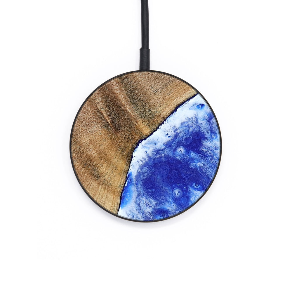 Perfectly simple, MagSafe compatible, USB-C, 1 of a kind Wireless Qi charger. CNC machined aluminum body. Every Wood+Resin inlay is unique and made at our shop in Elkhart, Indiana.