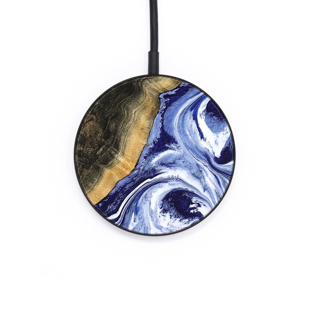 Perfectly simple, MagSafe compatible, USB-C, 1 of a kind Wireless Qi charger. CNC machined aluminum body. Every Wood+Resin inlay is unique and made at our shop in Elkhart, Indiana.