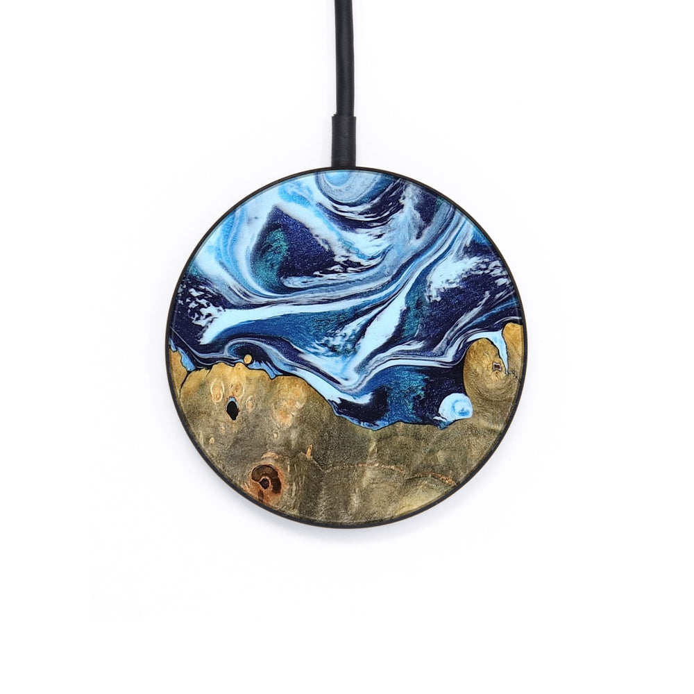 Perfectly simple, MagSafe compatible, USB-C, 1 of a kind Wireless Qi charger. CNC machined aluminum body. Every Wood+Resin inlay is unique and made at our shop in Elkhart, Indiana.