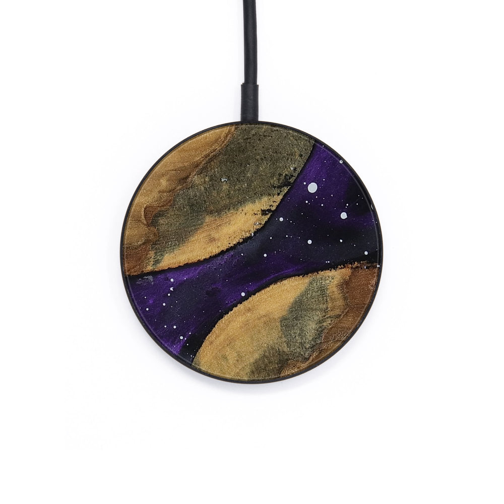 Perfectly simple, MagSafe compatible, USB-C, 1 of a kind Wireless Qi charger. CNC machined aluminum body. Every Wood+Resin inlay is unique and made at our shop in Elkhart, Indiana.