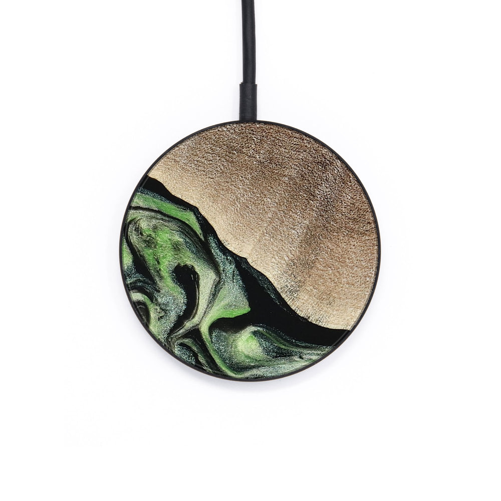 Perfectly simple, MagSafe compatible, USB-C, 1 of a kind Wireless Qi charger. CNC machined aluminum body. Every Wood+Resin inlay is unique and made at our shop in Elkhart, Indiana.