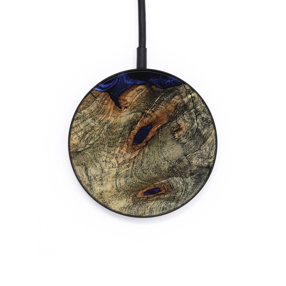 Perfectly simple, MagSafe compatible, USB-C, 1 of a kind Wireless Qi charger. CNC machined aluminum body. Every Wood+Resin inlay is unique and made at our shop in Elkhart, Indiana.
