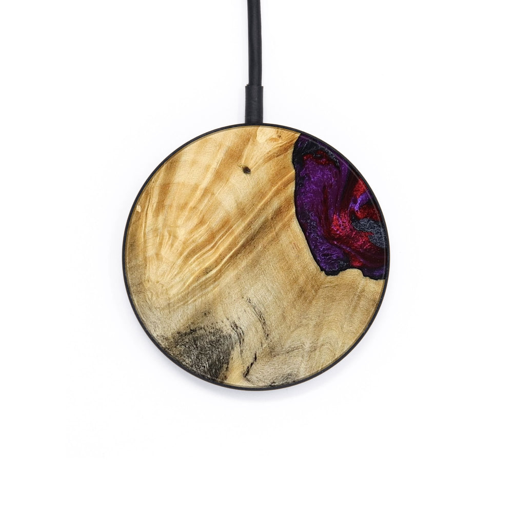 Perfectly simple, MagSafe compatible, USB-C, 1 of a kind Wireless Qi charger. CNC machined aluminum body. Every Wood+Resin inlay is unique and made at our shop in Elkhart, Indiana.