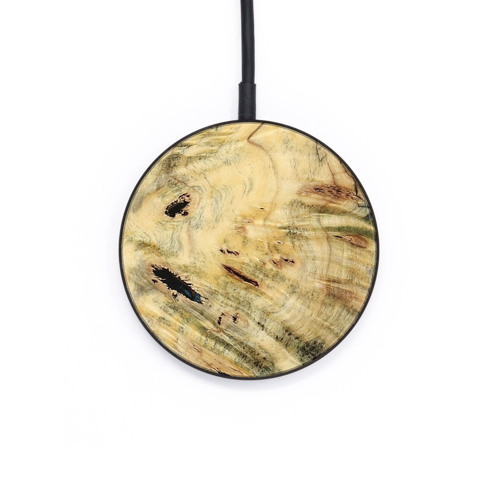 Perfectly simple, MagSafe compatible, USB-C, 1 of a kind Wireless Qi charger. CNC machined aluminum body. Every Wood+Resin inlay is unique and made at our shop in Elkhart, Indiana.