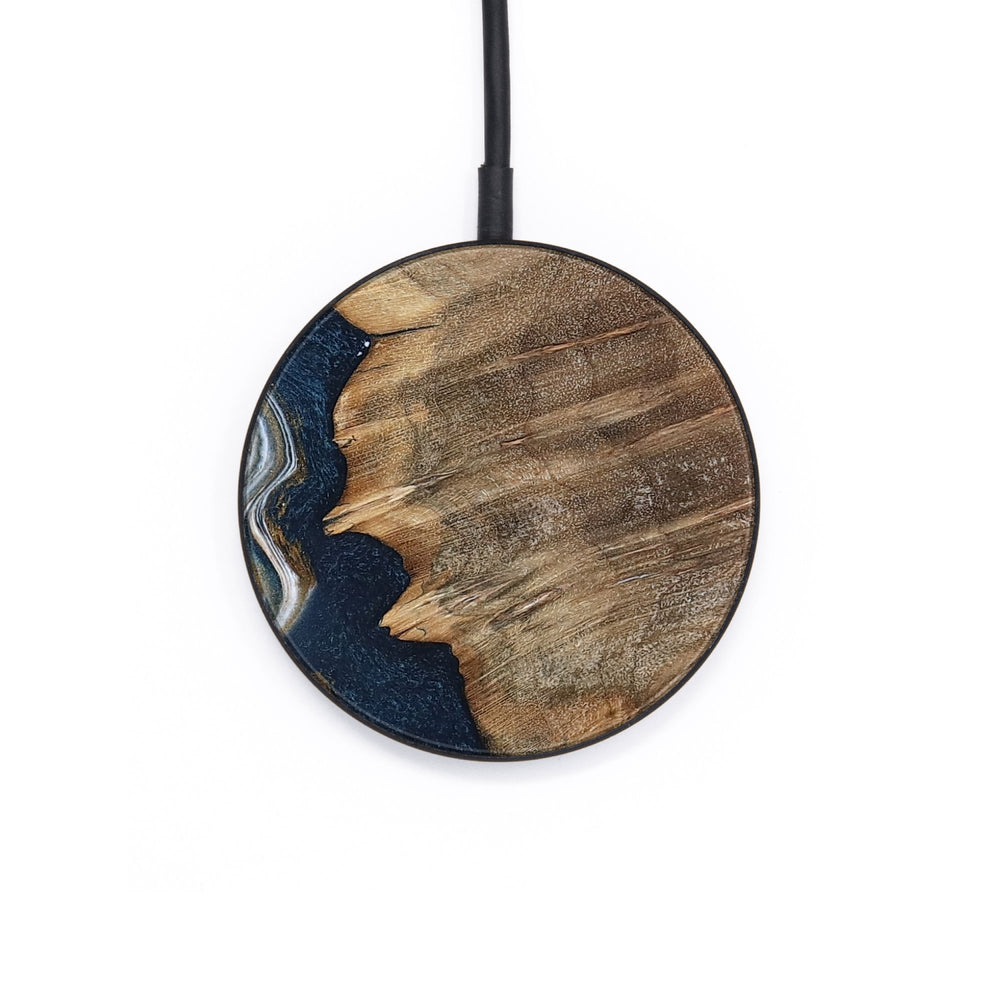 Perfectly simple, MagSafe compatible, USB-C, 1 of a kind Wireless Qi charger. CNC machined aluminum body. Every Wood+Resin inlay is unique and made at our shop in Elkhart, Indiana.