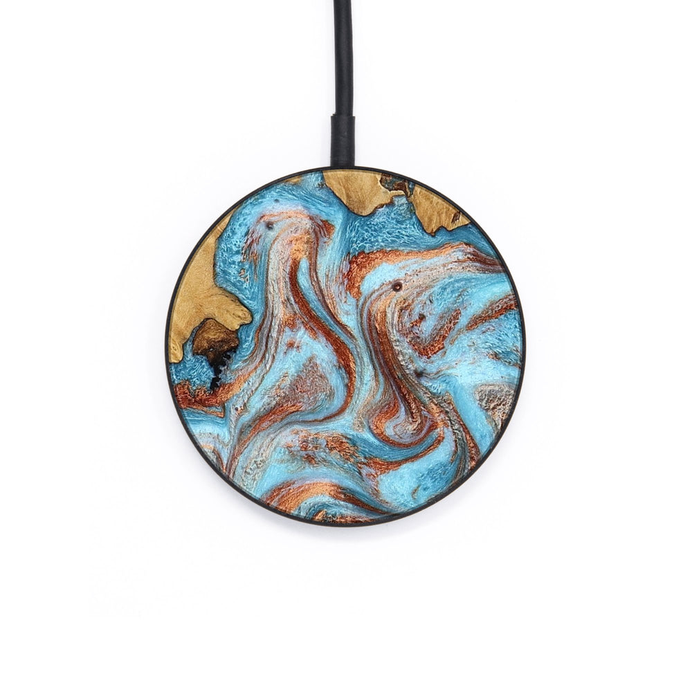 Perfectly simple, MagSafe compatible, USB-C, 1 of a kind Wireless Qi charger. CNC machined aluminum body. Every Wood+Resin inlay is unique and made at our shop in Elkhart, Indiana.