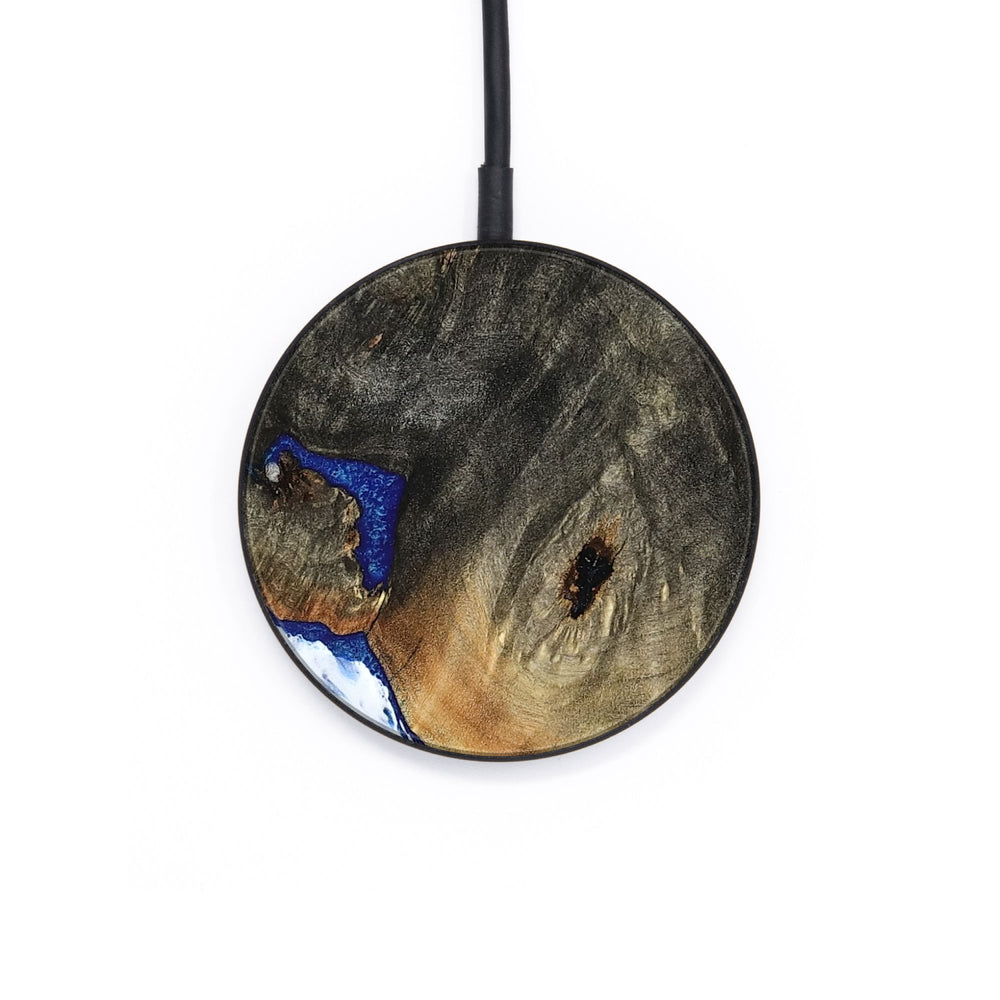 Perfectly simple, MagSafe compatible, USB-C, 1 of a kind Wireless Qi charger. CNC machined aluminum body. Every Wood+Resin inlay is unique and made at our shop in Elkhart, Indiana.