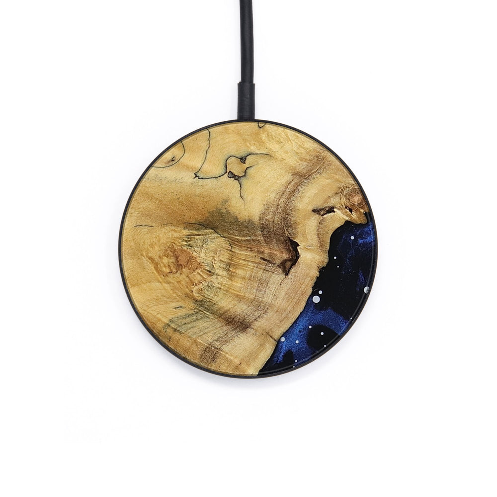Perfectly simple, MagSafe compatible, USB-C, 1 of a kind Wireless Qi charger. CNC machined aluminum body. Every Wood+Resin inlay is unique and made at our shop in Elkhart, Indiana.