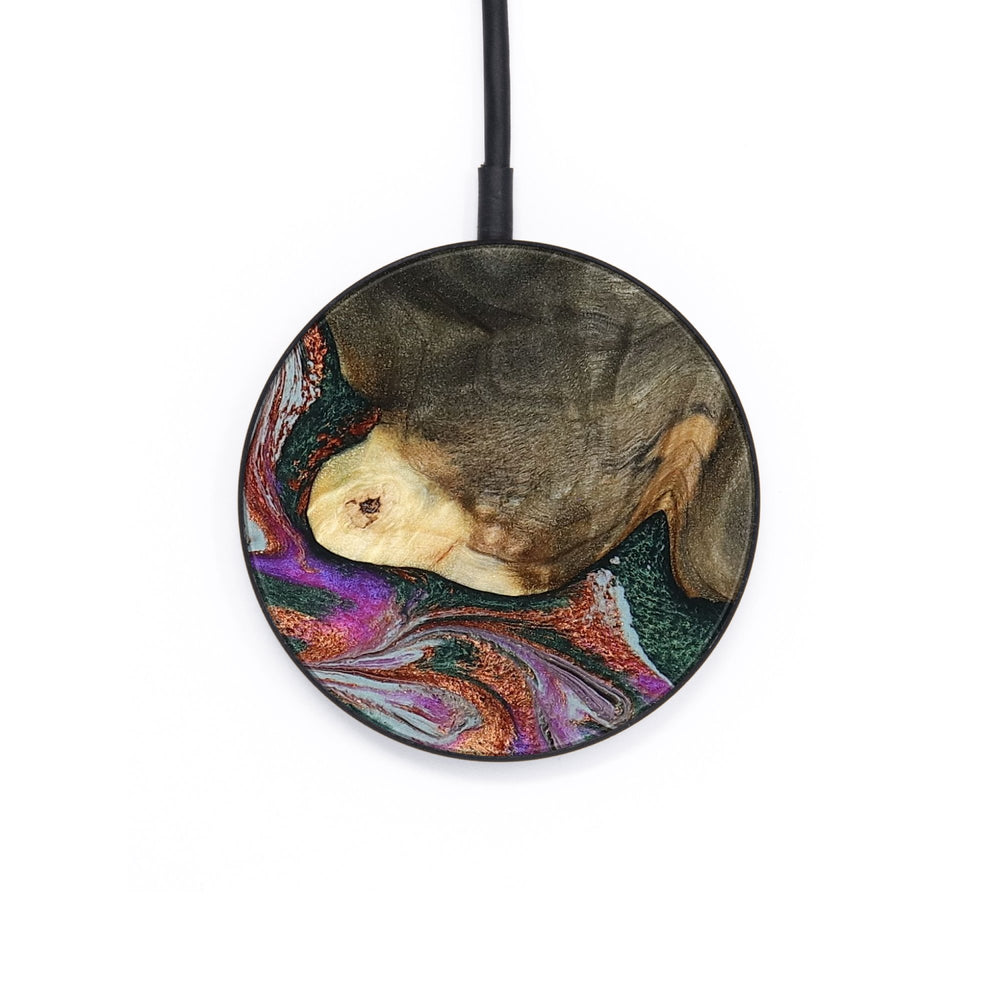 Perfectly simple, MagSafe compatible, USB-C, 1 of a kind Wireless Qi charger. CNC machined aluminum body. Every Wood+Resin inlay is unique and made at our shop in Elkhart, Indiana.