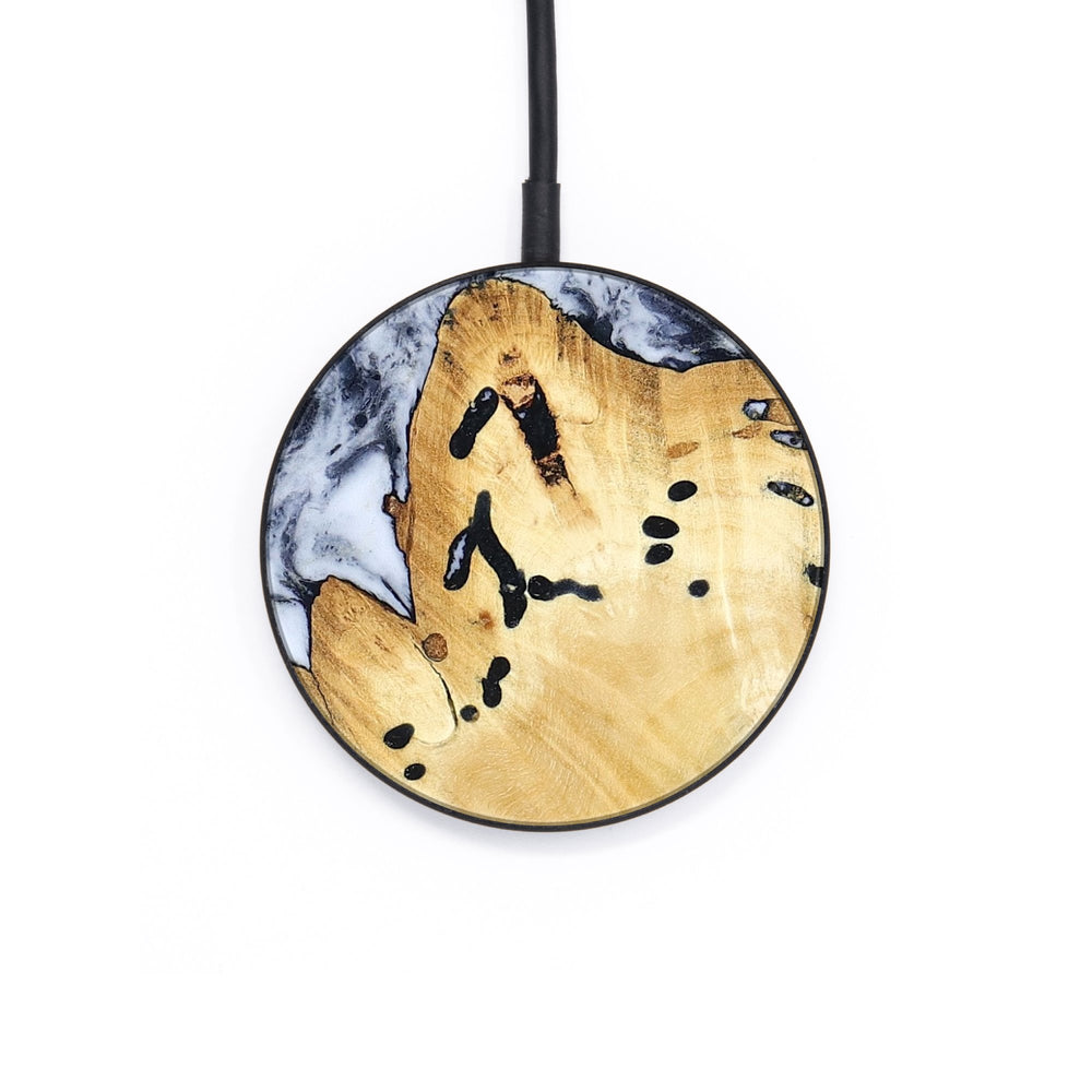 Perfectly simple, MagSafe compatible, USB-C, 1 of a kind Wireless Qi charger. CNC machined aluminum body. Every Wood+Resin inlay is unique and made at our shop in Elkhart, Indiana.