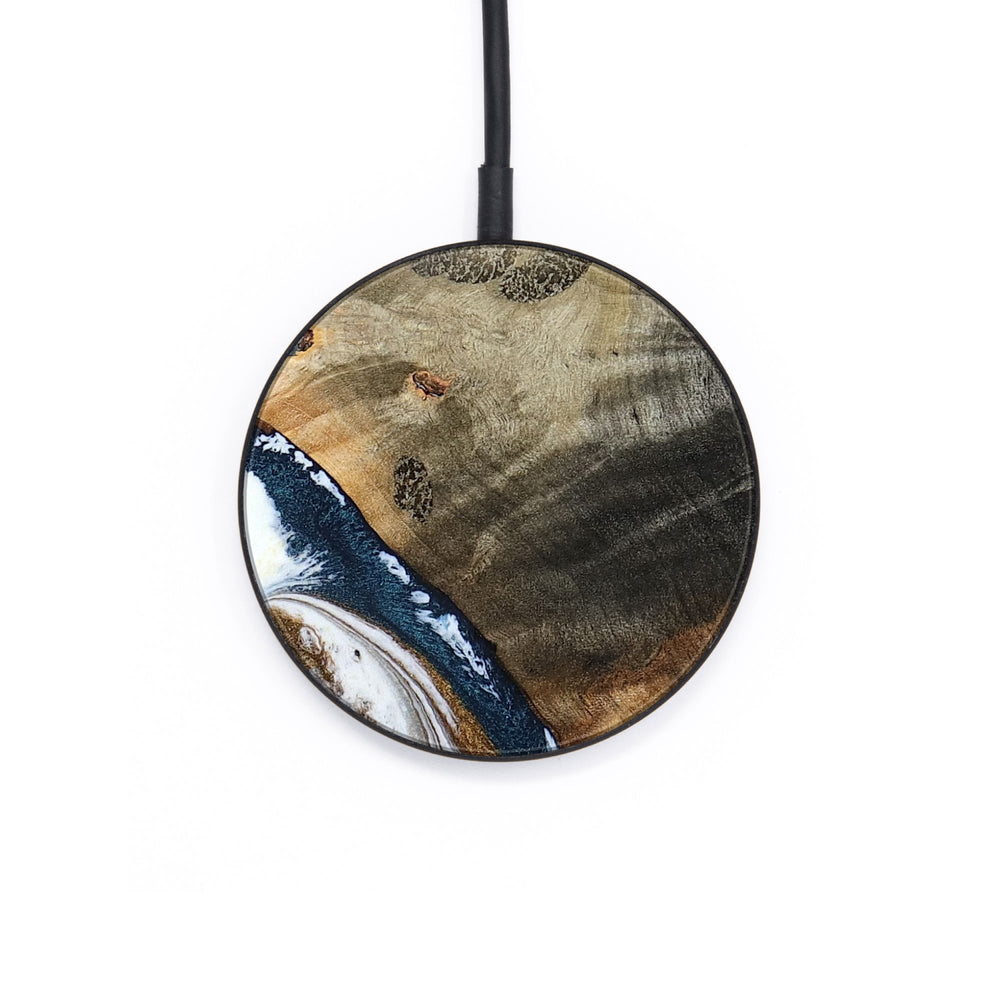 Perfectly simple, MagSafe compatible, USB-C, 1 of a kind Wireless Qi charger. CNC machined aluminum body. Every Wood+Resin inlay is unique and made at our shop in Elkhart, Indiana.