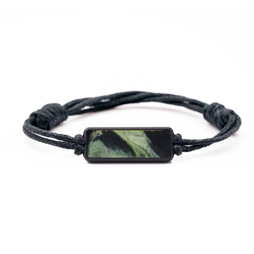 The housing is machined from a solid piece of black anodized aluminum. The cord is tied with adjustable knots to make it easy to fit to your wrist. We then inlay a small piece of our Wood+Resin material in the front of the housing. Everything fits together perfectly to make a simple, unique bracelet.
