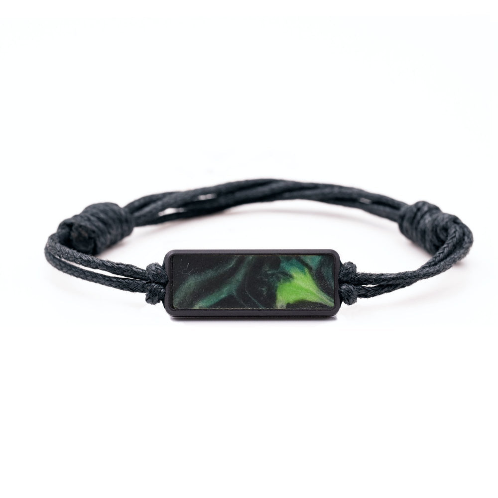 The housing is machined from a solid piece of black anodized aluminum. The cord is tied with adjustable knots to make it easy to fit to your wrist. We then inlay a small piece of our Wood+Resin material in the front of the housing. Everything fits together perfectly to make a simple, unique bracelet.