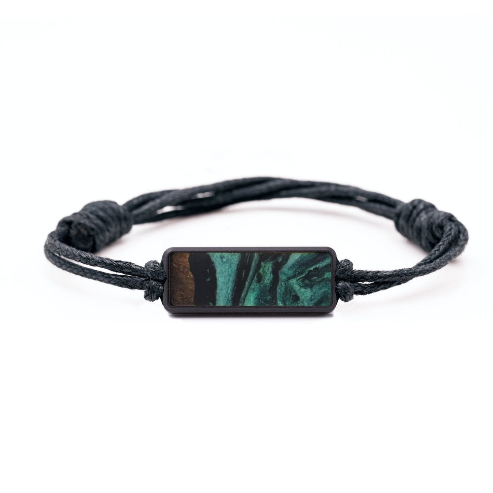 The housing is machined from a solid piece of black anodized aluminum. The cord is tied with adjustable knots to make it easy to fit to your wrist. We then inlay a small piece of our Wood+Resin material in the front of the housing. Everything fits together perfectly to make a simple, unique bracelet.