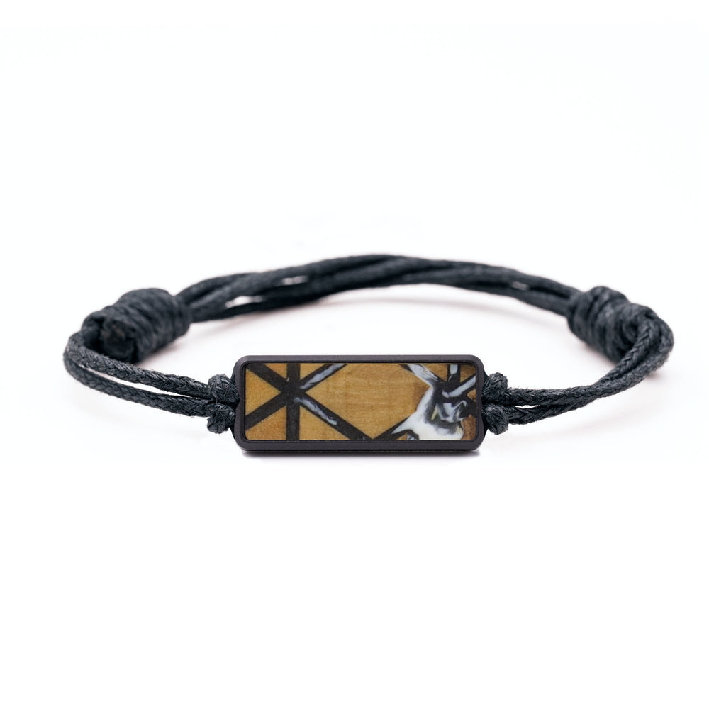 The housing is machined from a solid piece of black anodized aluminum. The cord is tied with adjustable knots to make it easy to fit to your wrist. We then inlay a small piece of our Wood+Resin material in the front of the housing. Everything fits together perfectly to make a simple, unique bracelet.