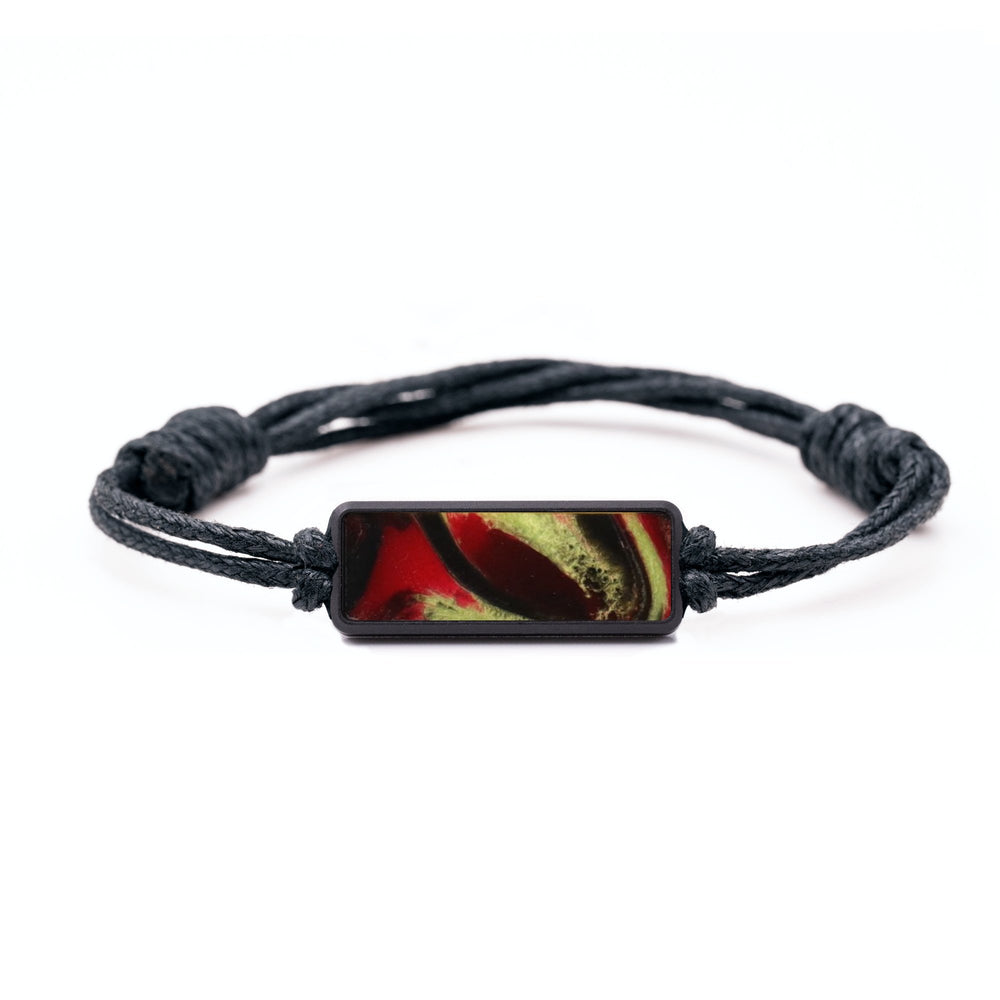 The housing is machined from a solid piece of black anodized aluminum. The cord is tied with adjustable knots to make it easy to fit to your wrist. We then inlay a small piece of our Wood+Resin material in the front of the housing. Everything fits together perfectly to make a simple, unique bracelet.