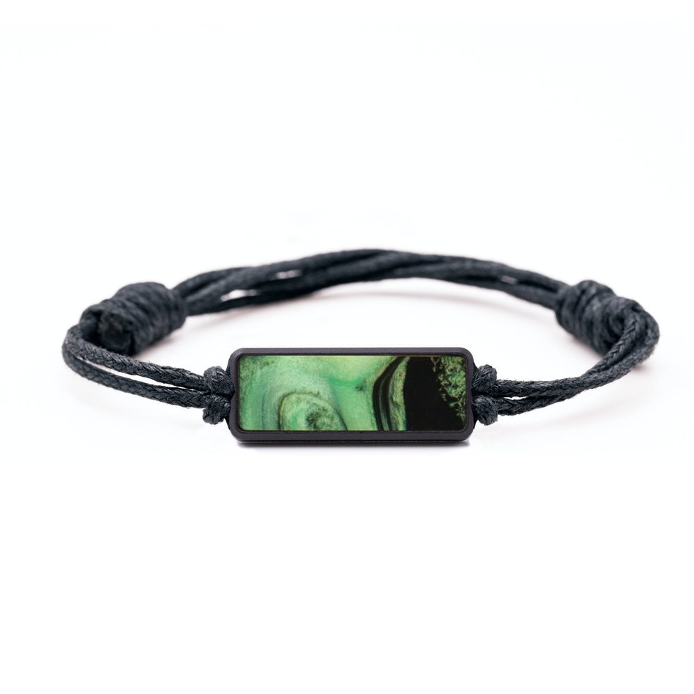 The housing is machined from a solid piece of black anodized aluminum. The cord is tied with adjustable knots to make it easy to fit to your wrist. We then inlay a small piece of our Wood+Resin material in the front of the housing. Everything fits together perfectly to make a simple, unique bracelet.