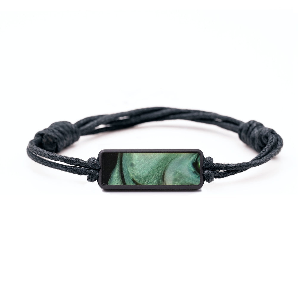 The housing is machined from a solid piece of black anodized aluminum. The cord is tied with adjustable knots to make it easy to fit to your wrist. We then inlay a small piece of our Wood+Resin material in the front of the housing. Everything fits together perfectly to make a simple, unique bracelet.