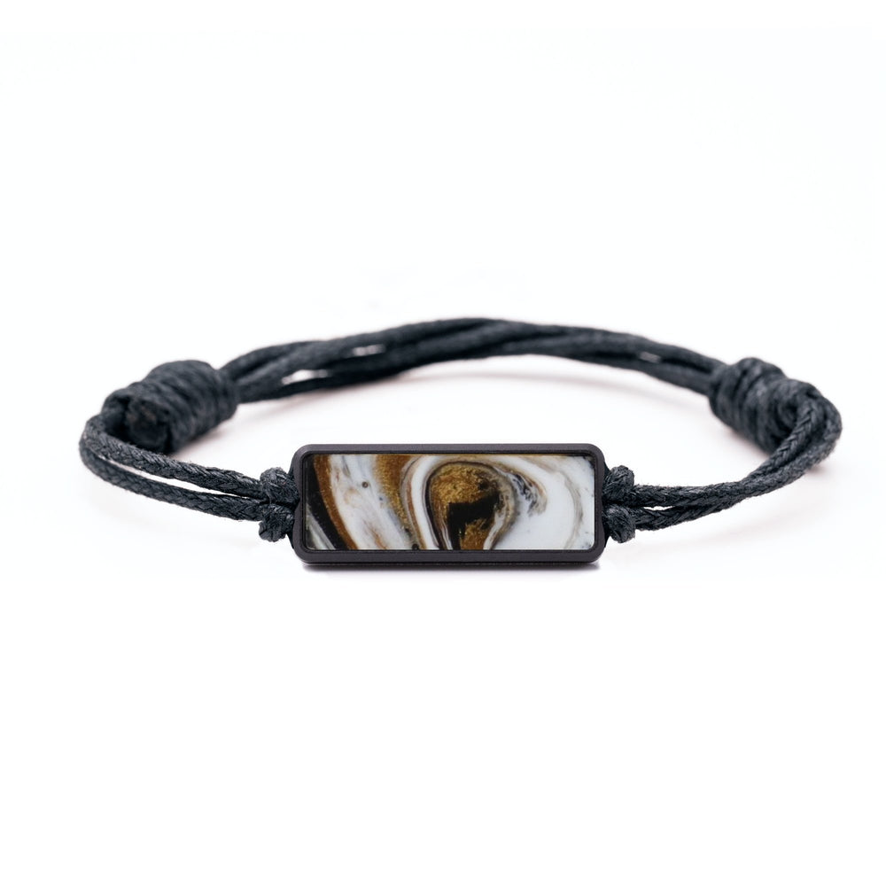 The housing is machined from a solid piece of black anodized aluminum. The cord is tied with adjustable knots to make it easy to fit to your wrist. We then inlay a small piece of our Wood+Resin material in the front of the housing. Everything fits together perfectly to make a simple, unique bracelet.