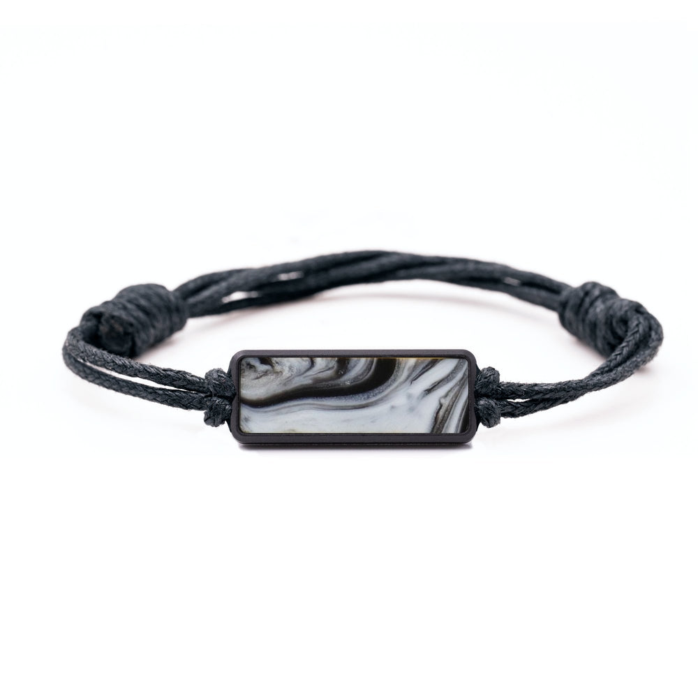The housing is machined from a solid piece of black anodized aluminum. The cord is tied with adjustable knots to make it easy to fit to your wrist. We then inlay a small piece of our Wood+Resin material in the front of the housing. Everything fits together perfectly to make a simple, unique bracelet.