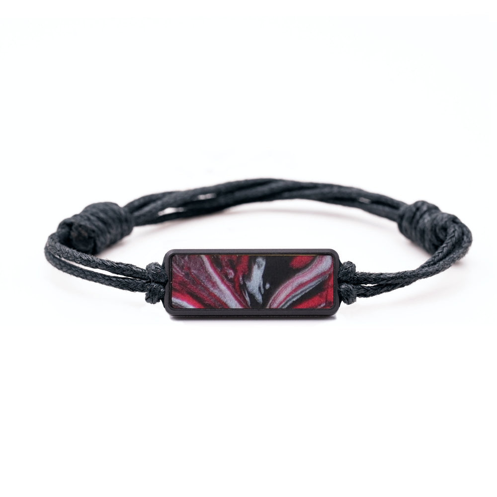 The housing is machined from a solid piece of black anodized aluminum. The cord is tied with adjustable knots to make it easy to fit to your wrist. We then inlay a small piece of our Wood+Resin material in the front of the housing. Everything fits together perfectly to make a simple, unique bracelet.