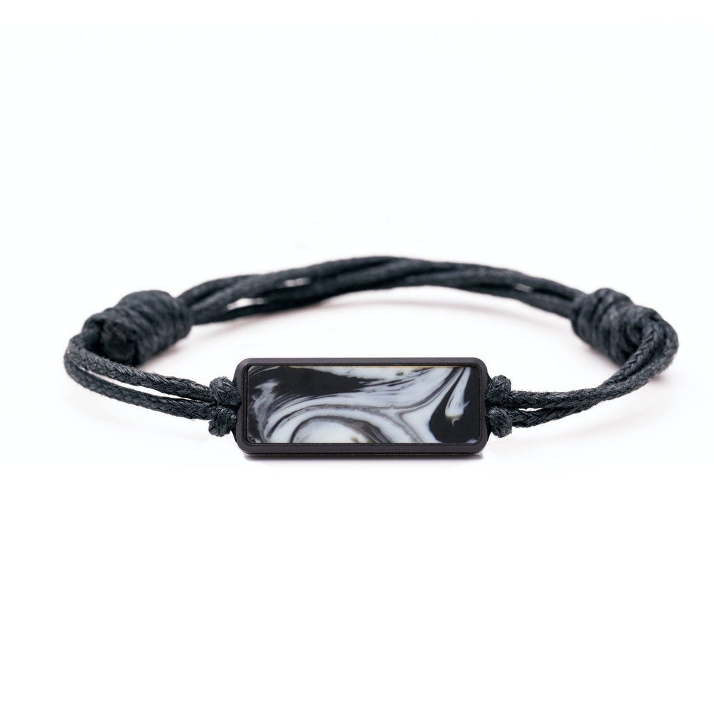 The housing is machined from a solid piece of black anodized aluminum. The cord is tied with adjustable knots to make it easy to fit to your wrist. We then inlay a small piece of our Wood+Resin material in the front of the housing. Everything fits together perfectly to make a simple, unique bracelet.