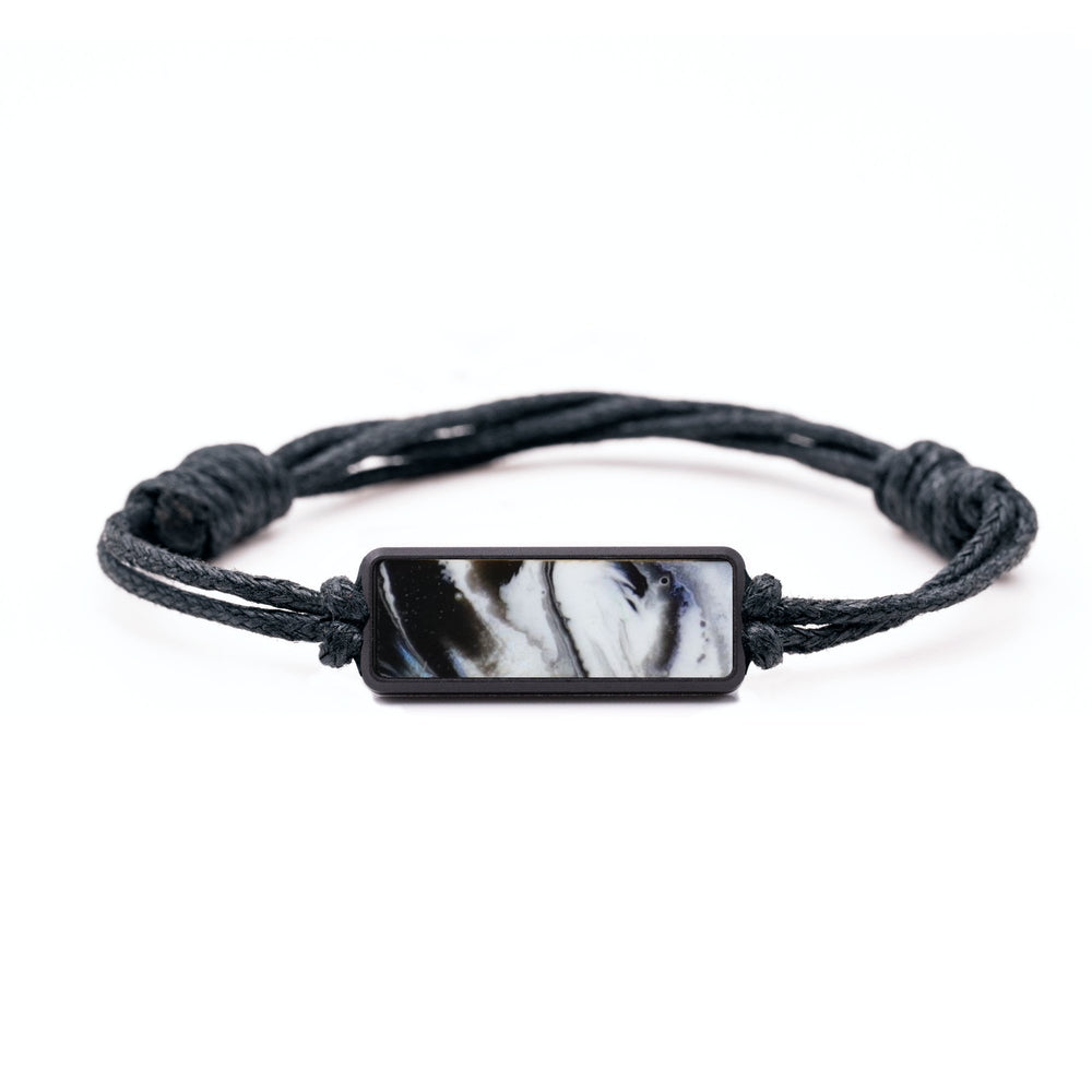 The housing is machined from a solid piece of black anodized aluminum. The cord is tied with adjustable knots to make it easy to fit to your wrist. We then inlay a small piece of our Wood+Resin material in the front of the housing. Everything fits together perfectly to make a simple, unique bracelet.
