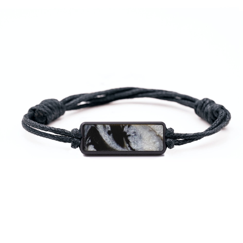 The housing is machined from a solid piece of black anodized aluminum. The cord is tied with adjustable knots to make it easy to fit to your wrist. We then inlay a small piece of our Wood+Resin material in the front of the housing. Everything fits together perfectly to make a simple, unique bracelet.