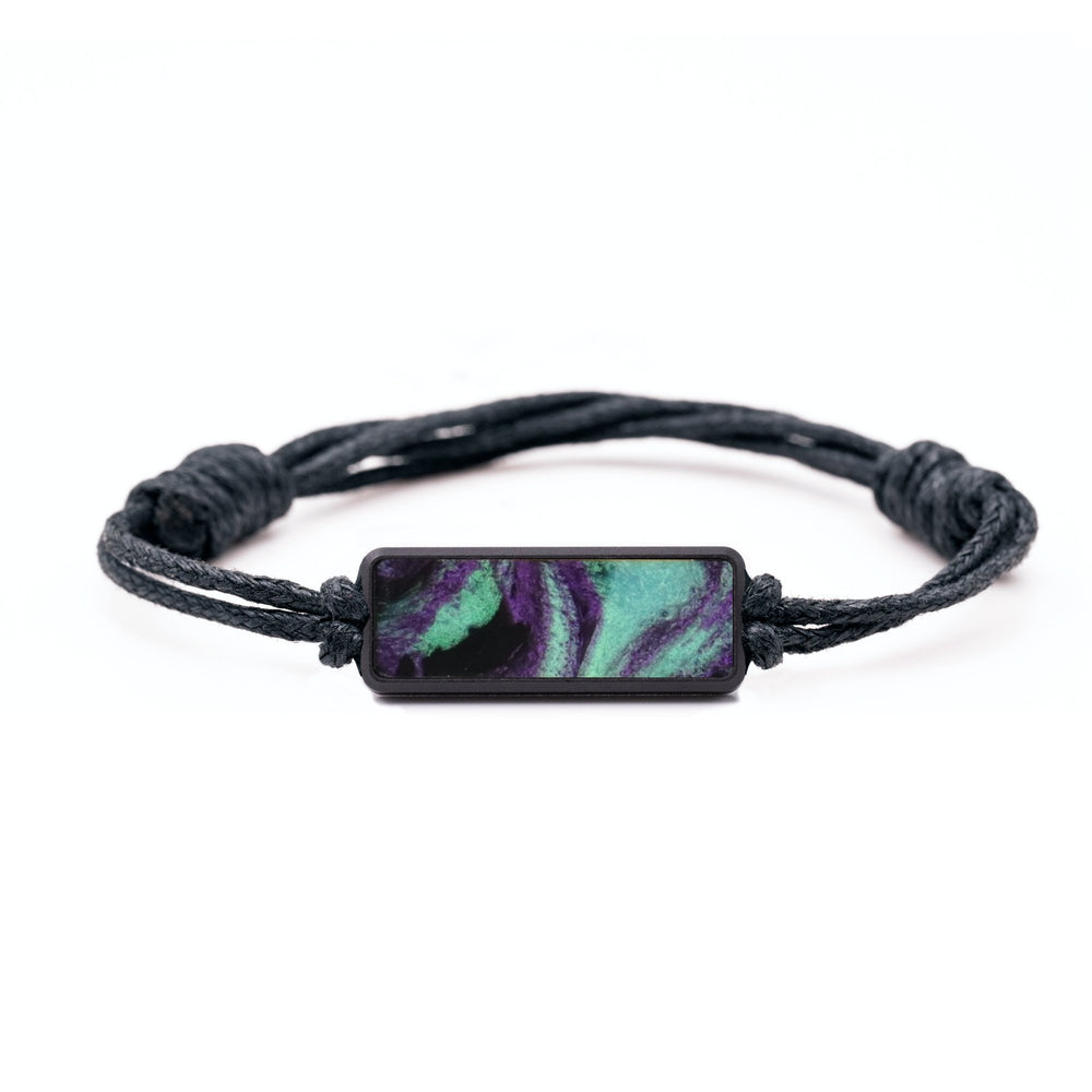The housing is machined from a solid piece of black anodized aluminum. The cord is tied with adjustable knots to make it easy to fit to your wrist. We then inlay a small piece of our Wood+Resin material in the front of the housing. Everything fits together perfectly to make a simple, unique bracelet.