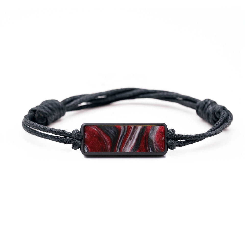 The housing is machined from a solid piece of black anodized aluminum. The cord is tied with adjustable knots to make it easy to fit to your wrist. We then inlay a small piece of our Wood+Resin material in the front of the housing. Everything fits together perfectly to make a simple, unique bracelet.