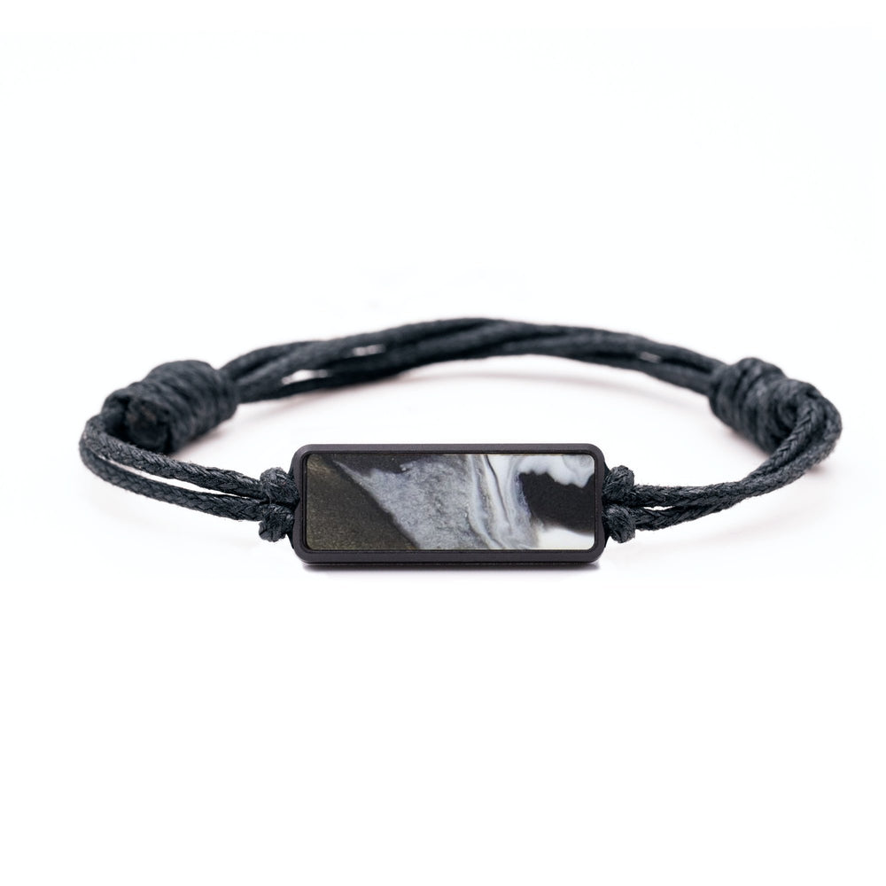 The housing is machined from a solid piece of black anodized aluminum. The cord is tied with adjustable knots to make it easy to fit to your wrist. We then inlay a small piece of our Wood+Resin material in the front of the housing. Everything fits together perfectly to make a simple, unique bracelet.