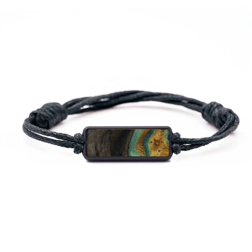 The housing is machined from a solid piece of black anodized aluminum. The cord is tied with adjustable knots to make it easy to fit to your wrist. We then inlay a small piece of our Wood+Resin material in the front of the housing. Everything fits together perfectly to make a simple, unique bracelet.