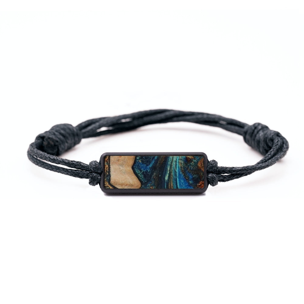 The housing is machined from a solid piece of black anodized aluminum. The cord is tied with adjustable knots to make it easy to fit to your wrist. We then inlay a small piece of our Wood+Resin material in the front of the housing. Everything fits together perfectly to make a simple, unique bracelet.