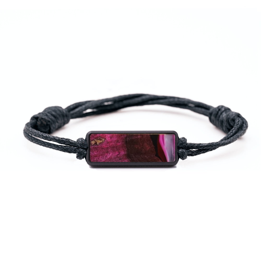 The housing is machined from a solid piece of black anodized aluminum. The cord is tied with adjustable knots to make it easy to fit to your wrist. We then inlay a small piece of our Wood+Resin material in the front of the housing. Everything fits together perfectly to make a simple, unique bracelet.