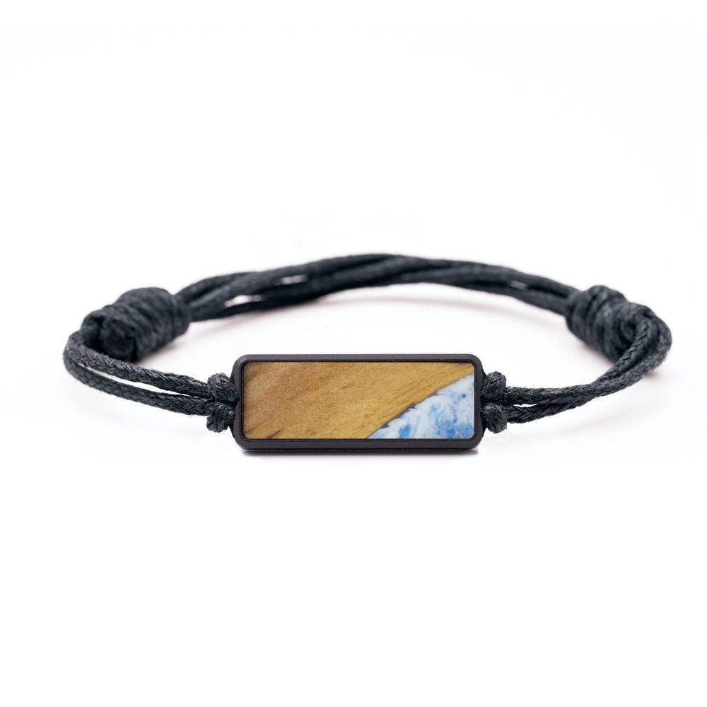 The housing is machined from a solid piece of black anodized aluminum. The cord is tied with adjustable knots to make it easy to fit to your wrist. We then inlay a small piece of our Wood+Resin material in the front of the housing. Everything fits together perfectly to make a simple, unique bracelet.