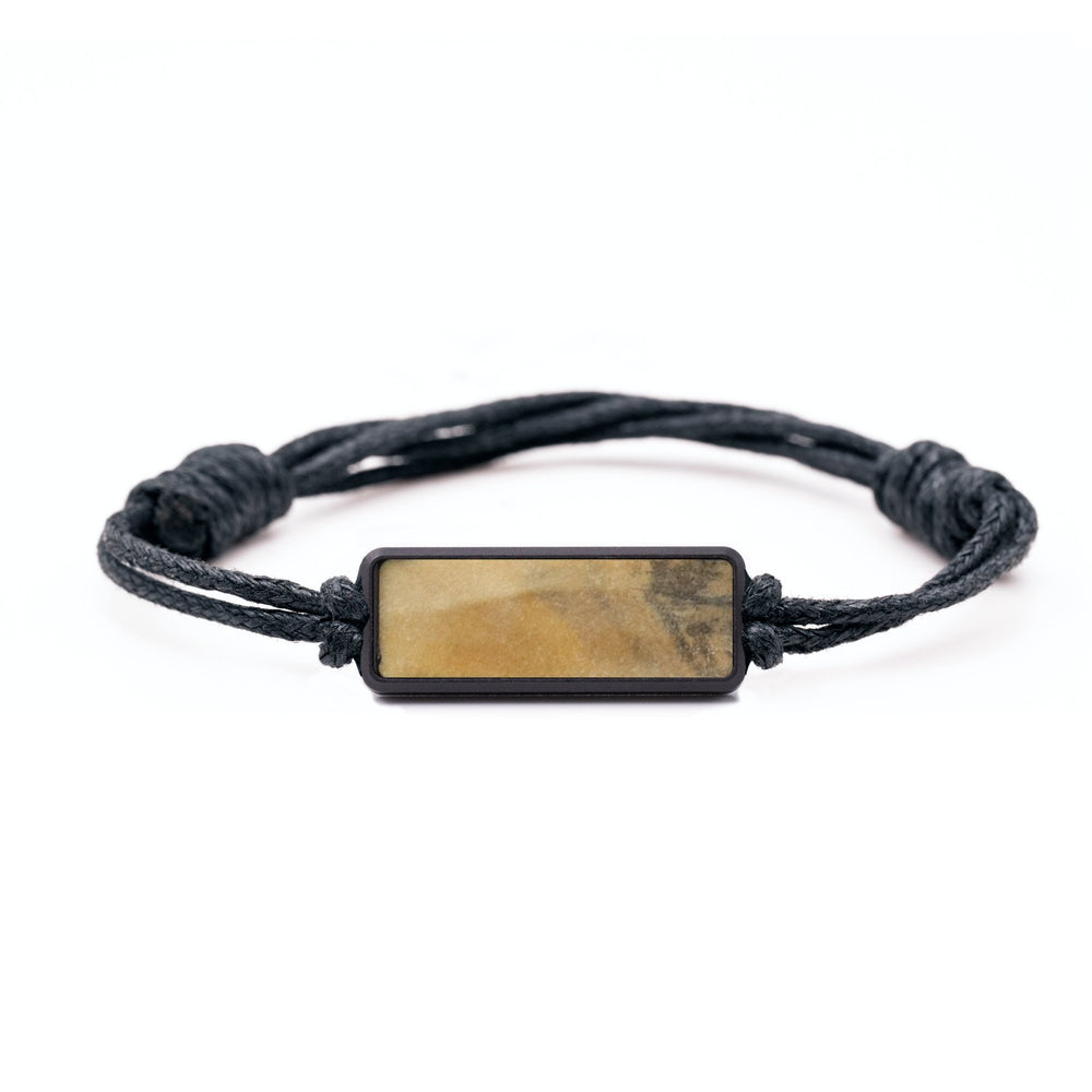 The housing is machined from a solid piece of black anodized aluminum. The cord is tied with adjustable knots to make it easy to fit to your wrist. We then inlay a small piece of our Wood+Resin material in the front of the housing. Everything fits together perfectly to make a simple, unique bracelet.