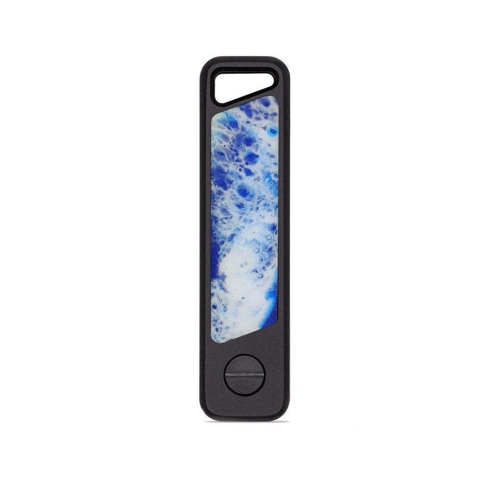 A sleek and rugged keyholder machined from a solid block of aluminum with unique inlay. It's lightweight, ultra-durable, and built to keep your keys organized without the jingle. Holds up to 4 keys in a compact, no-bulk design. Just unscrew, slide your keys on, and tighten it back up. Removable clip on reverse side.