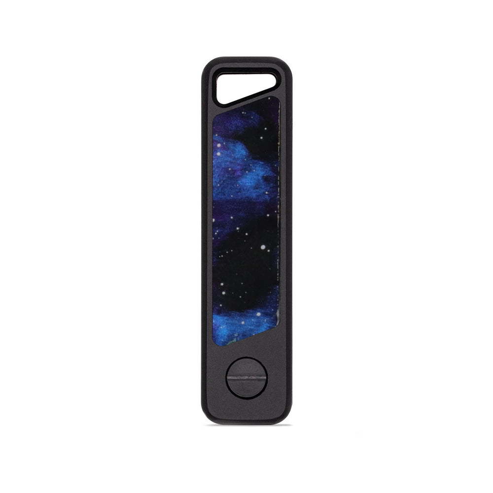 A sleek and rugged keyholder machined from a solid block of aluminum with unique inlay. It's lightweight, ultra-durable, and built to keep your keys organized without the jingle. Holds up to 4 keys in a compact, no-bulk design. Just unscrew, slide your keys on, and tighten it back up. Removable clip on reverse side.