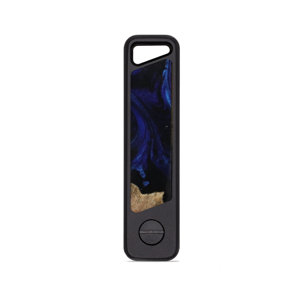 A sleek and rugged keyholder machined from a solid block of aluminum with unique inlay. It's lightweight, ultra-durable, and built to keep your keys organized without the jingle. Holds up to 4 keys in a compact, no-bulk design. Just unscrew, slide your keys on, and tighten it back up. Removable clip on reverse side.