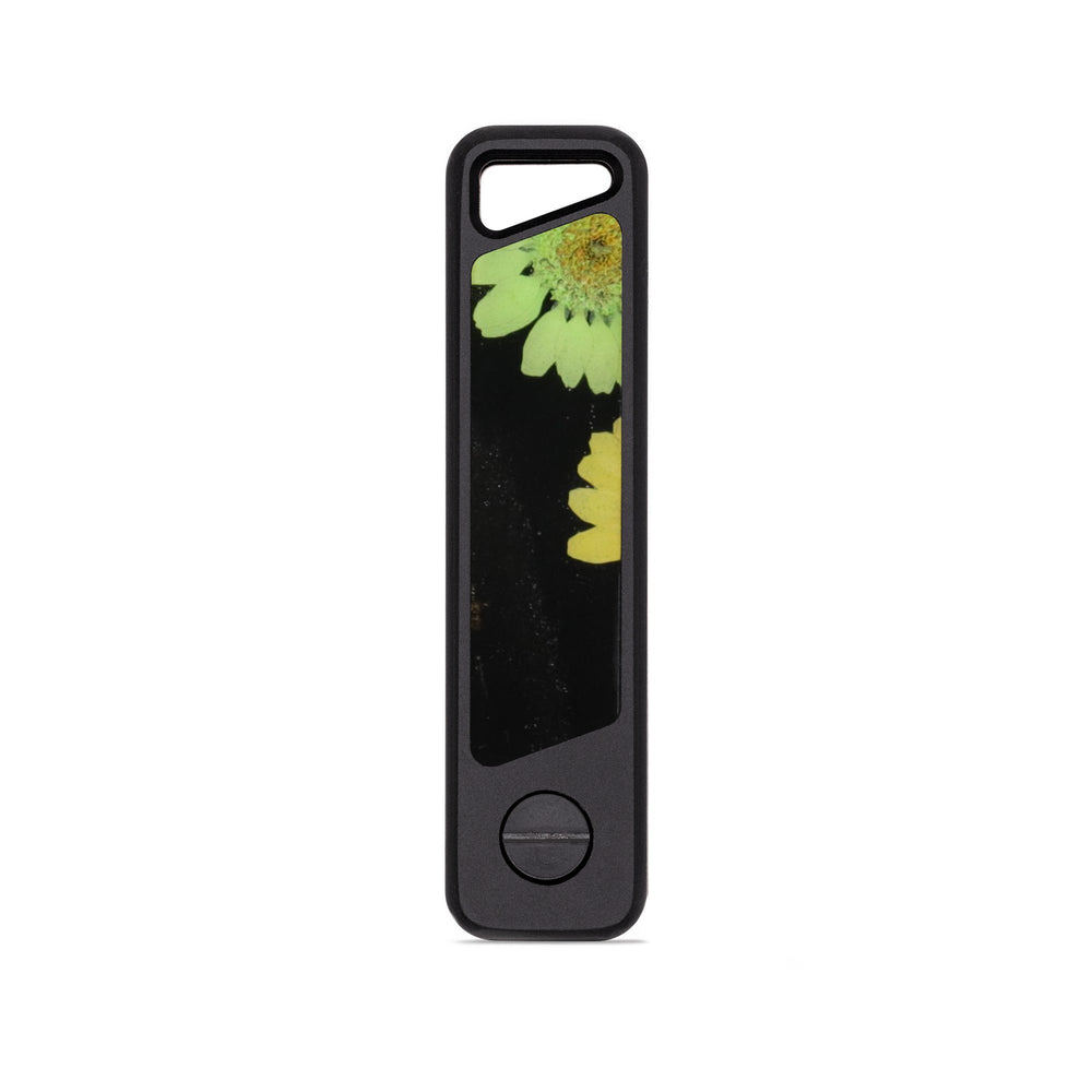 A sleek and rugged keyholder machined from a solid block of aluminum with unique inlay. It's lightweight, ultra-durable, and built to keep your keys organized without the jingle. Holds up to 4 keys in a compact, no-bulk design. Just unscrew, slide your keys on, and tighten it back up. Removable clip on reverse side.