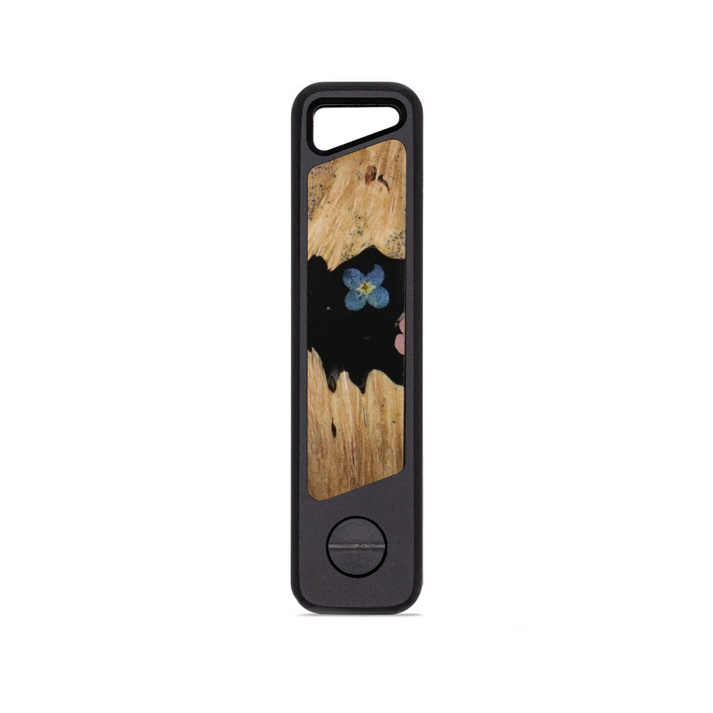 A sleek and rugged keyholder machined from a solid block of aluminum with unique inlay. It's lightweight, ultra-durable, and built to keep your keys organized without the jingle. Holds up to 4 keys in a compact, no-bulk design. Just unscrew, slide your keys on, and tighten it back up. Removable clip on reverse side.