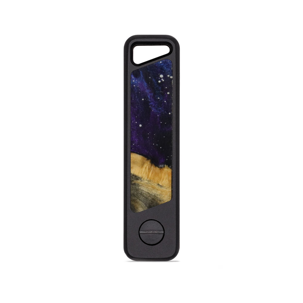 A sleek and rugged keyholder machined from a solid block of aluminum with unique inlay. It's lightweight, ultra-durable, and built to keep your keys organized without the jingle. Holds up to 4 keys in a compact, no-bulk design. Just unscrew, slide your keys on, and tighten it back up. Removable clip on reverse side.