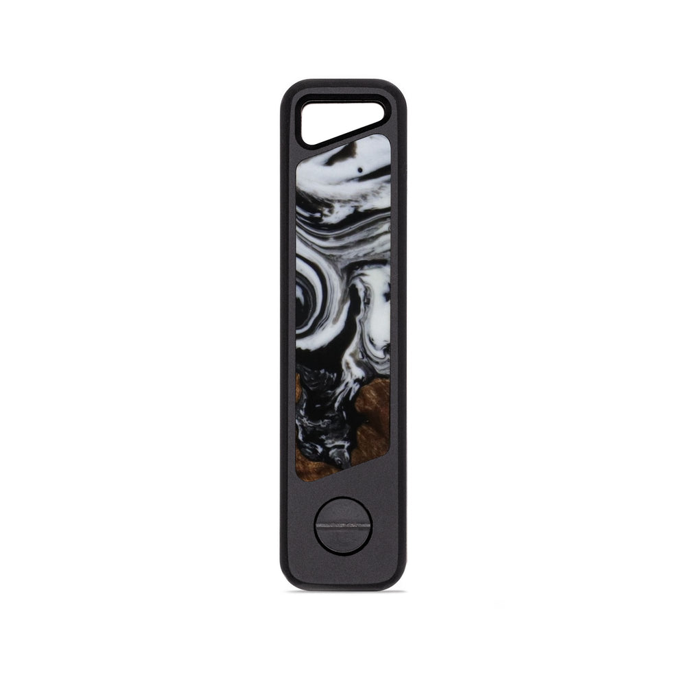 A sleek and rugged keyholder machined from a solid block of aluminum with unique inlay. It's lightweight, ultra-durable, and built to keep your keys organized without the jingle. Holds up to 6 keys in a compact, no-bulk design. Just unscrew, slide your keys on, and tighten it back up. Removable clip on reverse side.