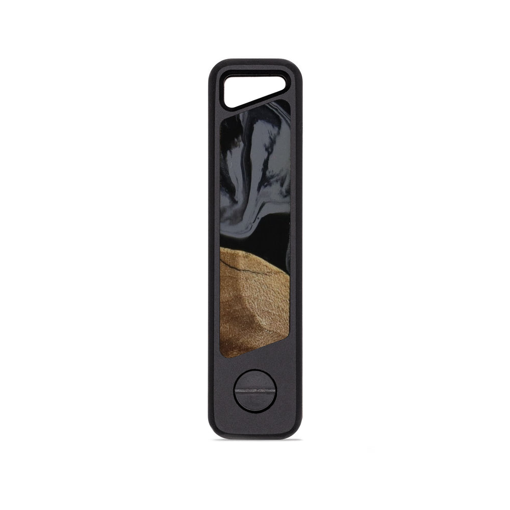 A sleek and rugged keyholder machined from a solid block of aluminum with unique inlay. It's lightweight, ultra-durable, and built to keep your keys organized without the jingle. Holds up to 4 keys in a compact, no-bulk design. Just unscrew, slide your keys on, and tighten it back up. Removable clip on reverse side.