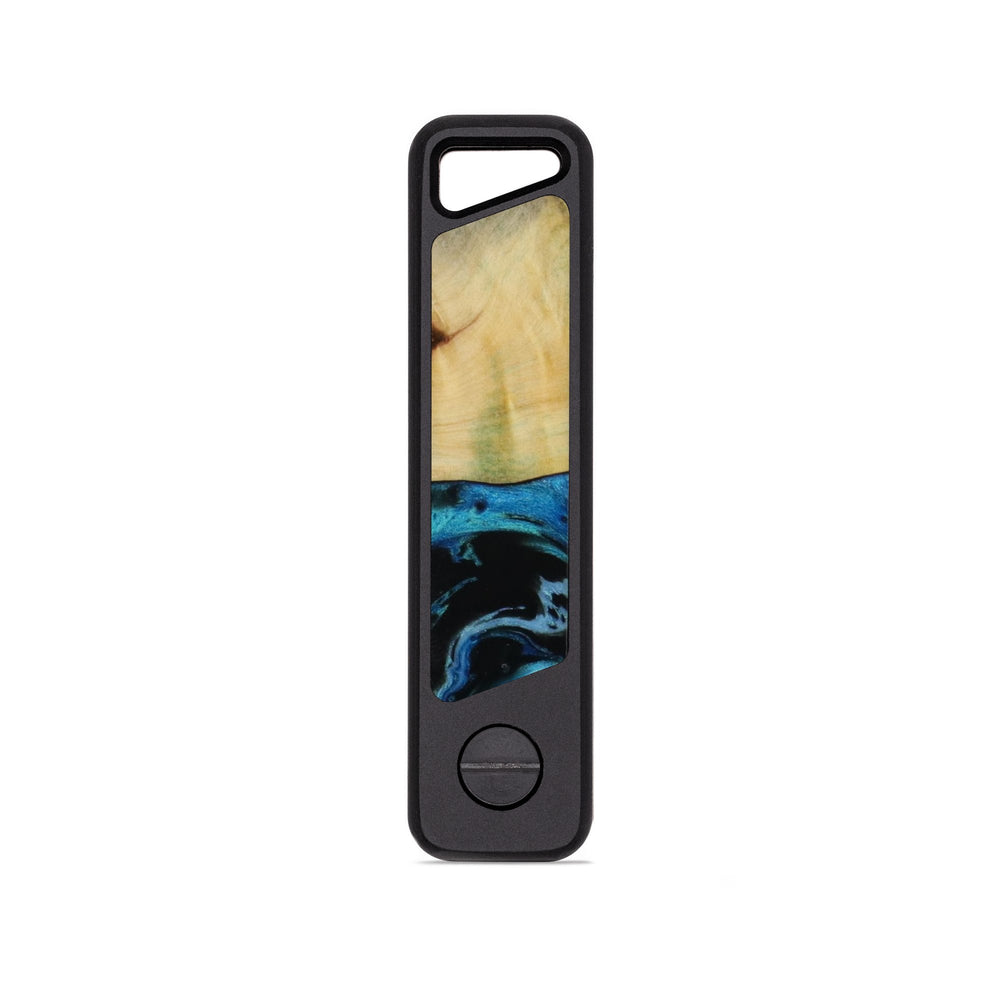 A sleek and rugged keyholder machined from a solid block of aluminum with unique inlay. It's lightweight, ultra-durable, and built to keep your keys organized without the jingle. Holds up to 4 keys in a compact, no-bulk design. Just unscrew, slide your keys on, and tighten it back up. Removable clip on reverse side.