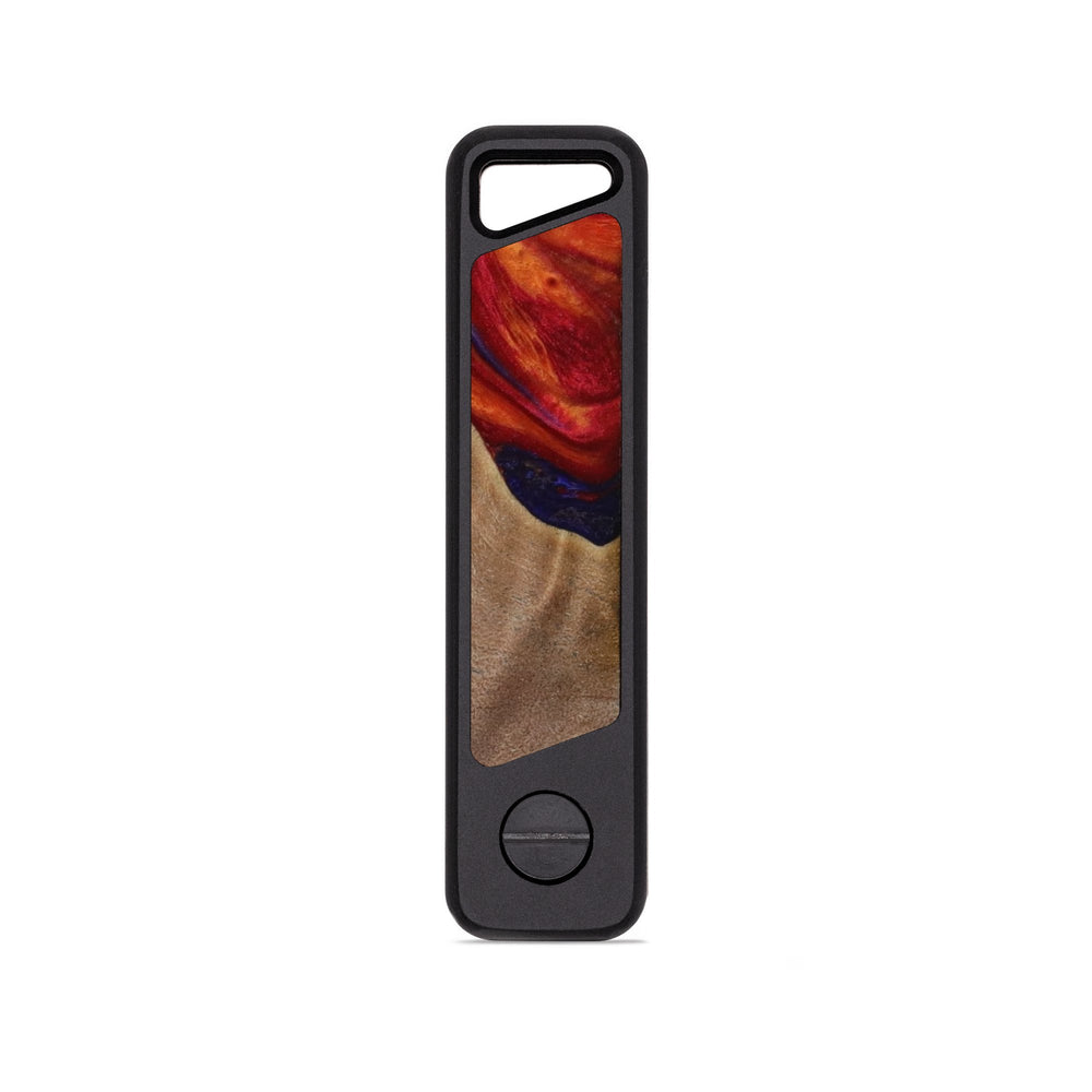 A sleek and rugged keyholder machined from a solid block of aluminum with unique inlay. It's lightweight, ultra-durable, and built to keep your keys organized without the jingle. Holds up to 6 keys in a compact, no-bulk design. Just unscrew, slide your keys on, and tighten it back up. Removable clip on reverse side.