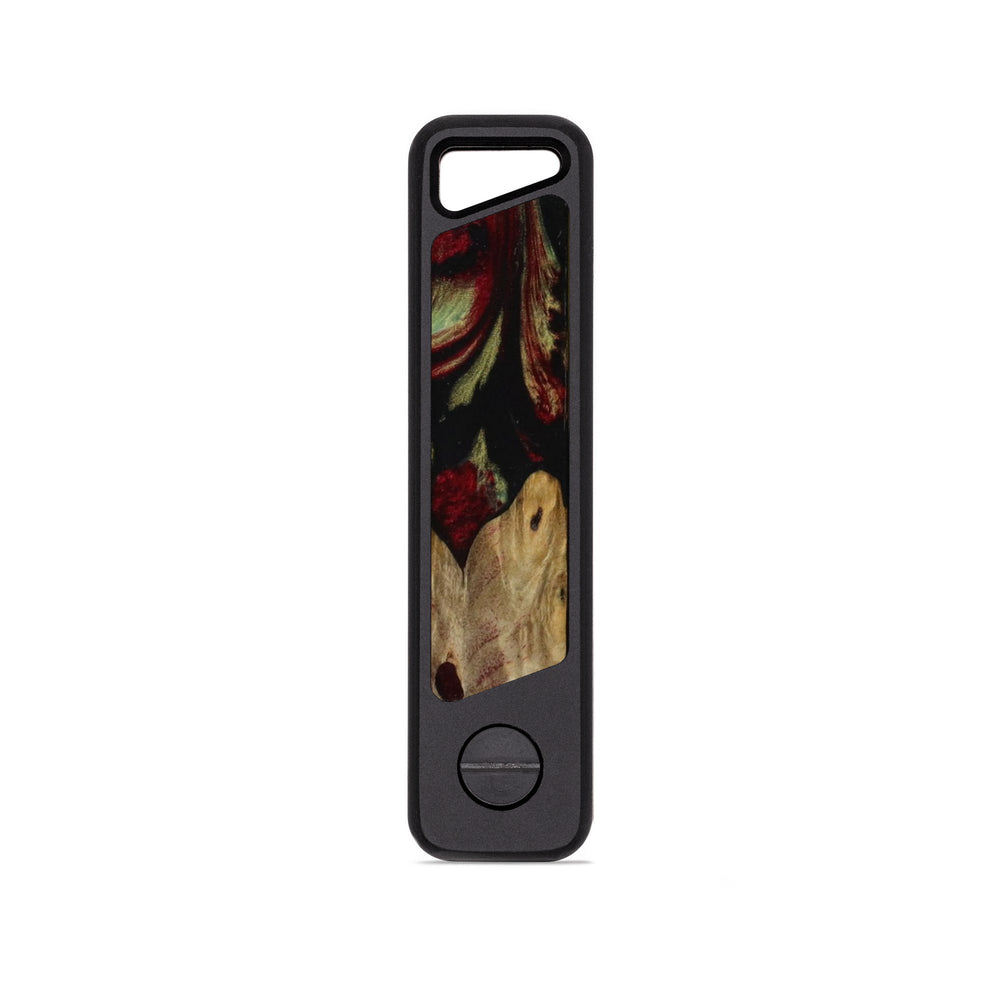 A sleek and rugged keyholder machined from a solid block of aluminum with unique inlay. It's lightweight, ultra-durable, and built to keep your keys organized without the jingle. Holds up to 6 keys in a compact, no-bulk design. Just unscrew, slide your keys on, and tighten it back up. Removable clip on reverse side.