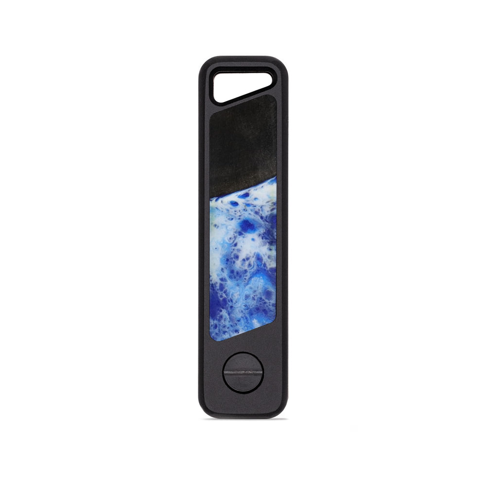 A sleek and rugged keyholder machined from a solid block of aluminum with unique inlay. It's lightweight, ultra-durable, and built to keep your keys organized without the jingle. Holds up to 6 keys in a compact, no-bulk design. Just unscrew, slide your keys on, and tighten it back up. Removable clip on reverse side.